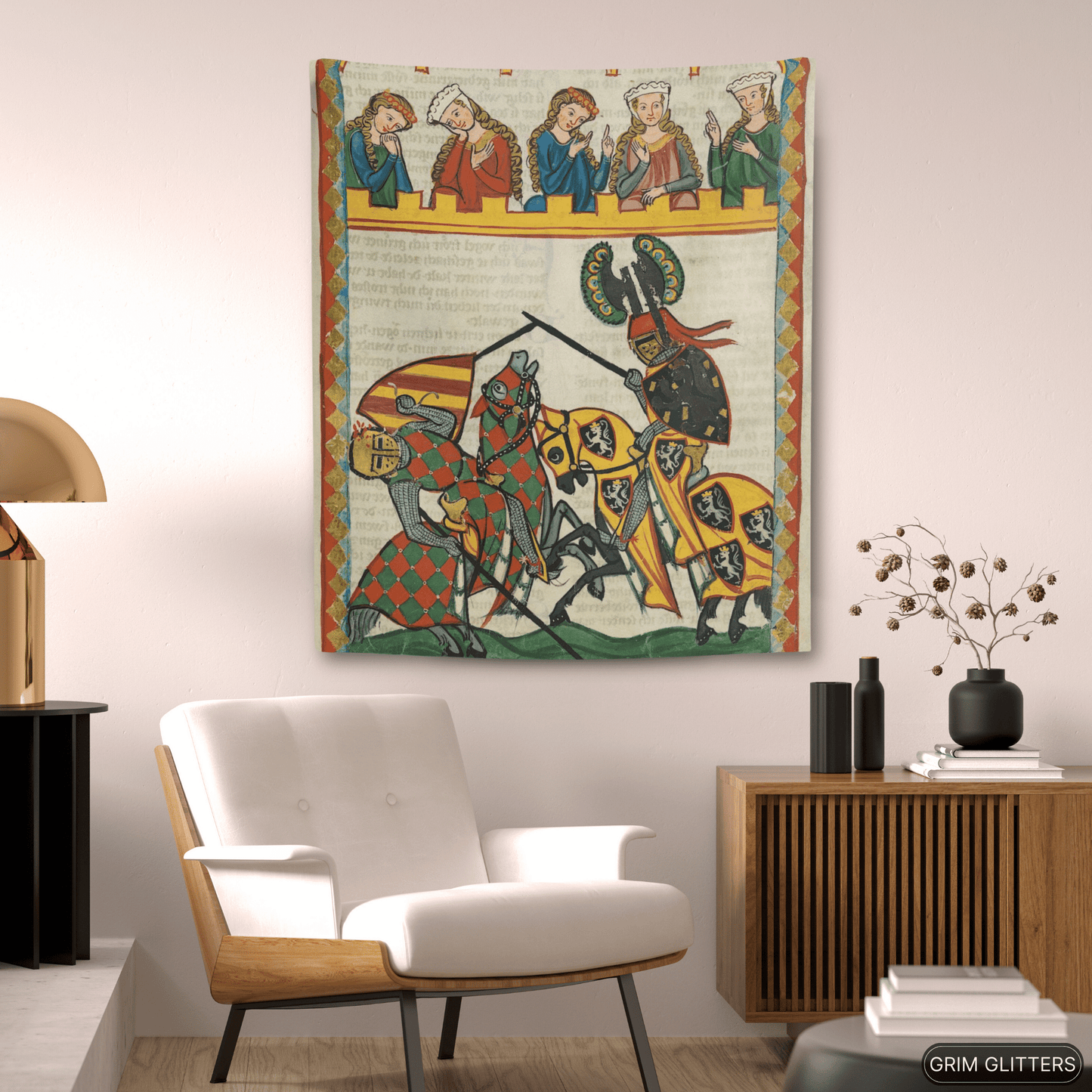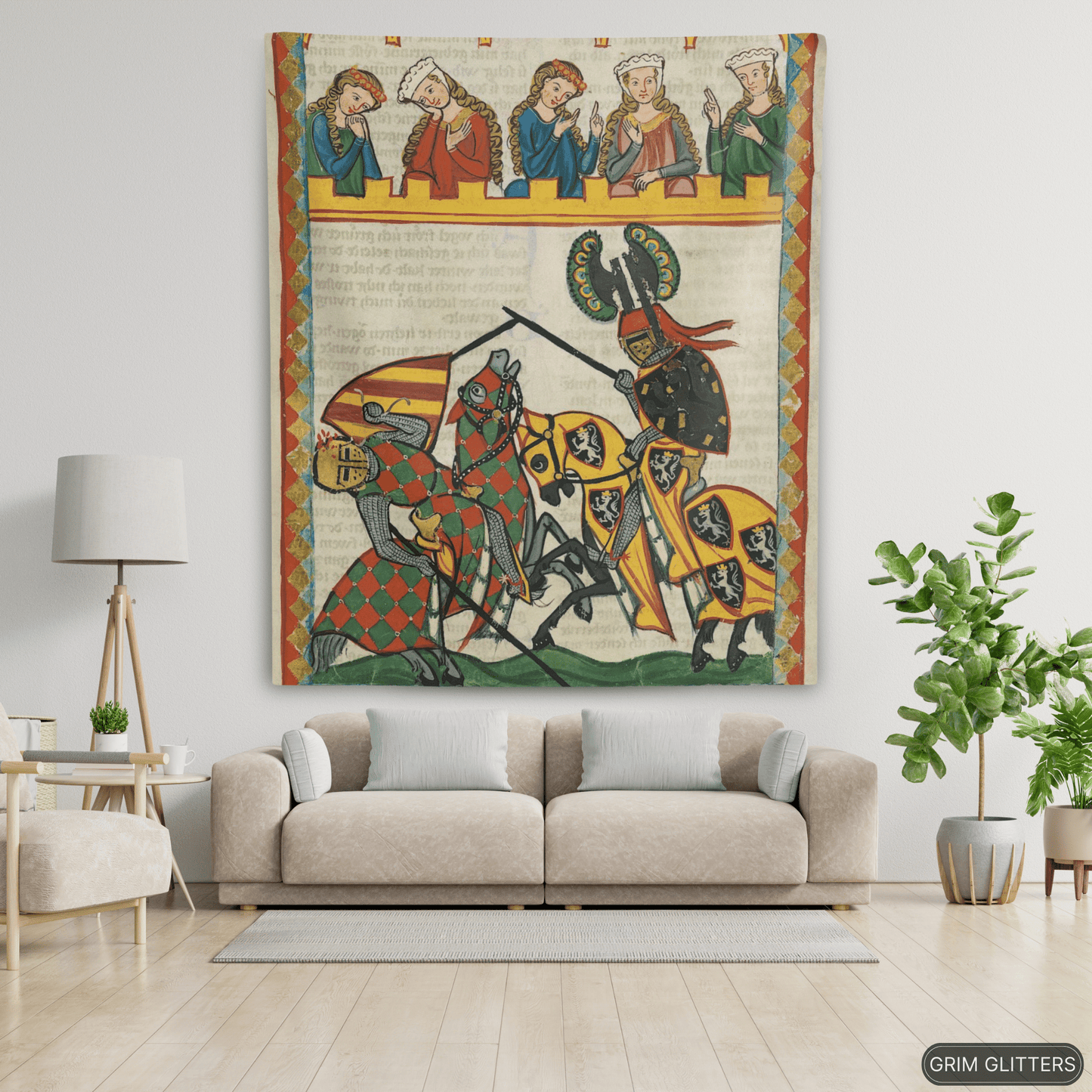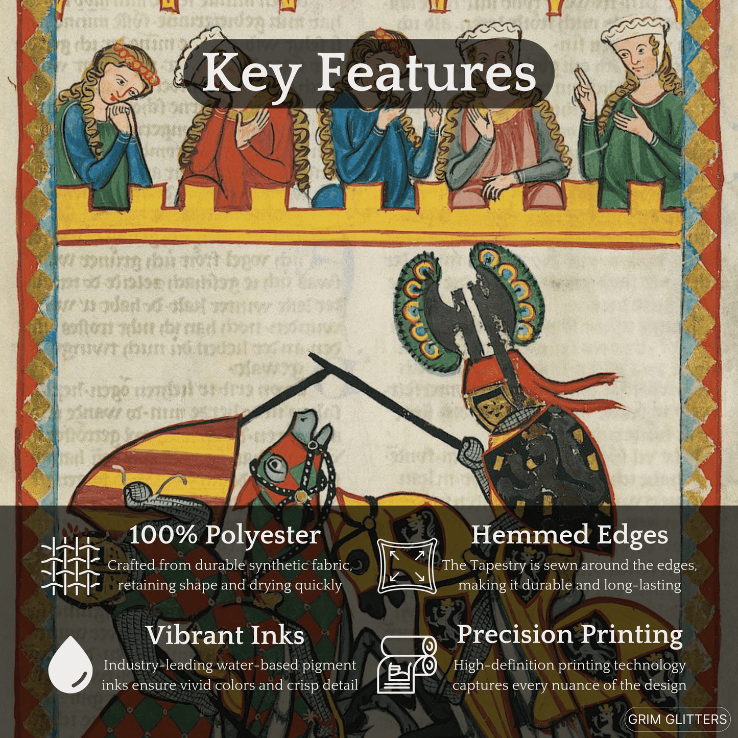 This tapestry serves as a captivating focal point in any living space, study, or reading nook. Whether you are a history enthusiast, a lover of medieval literature, or simply appreciate fine art, this tapestry brings a touch of chivalry and elegance to your decor.