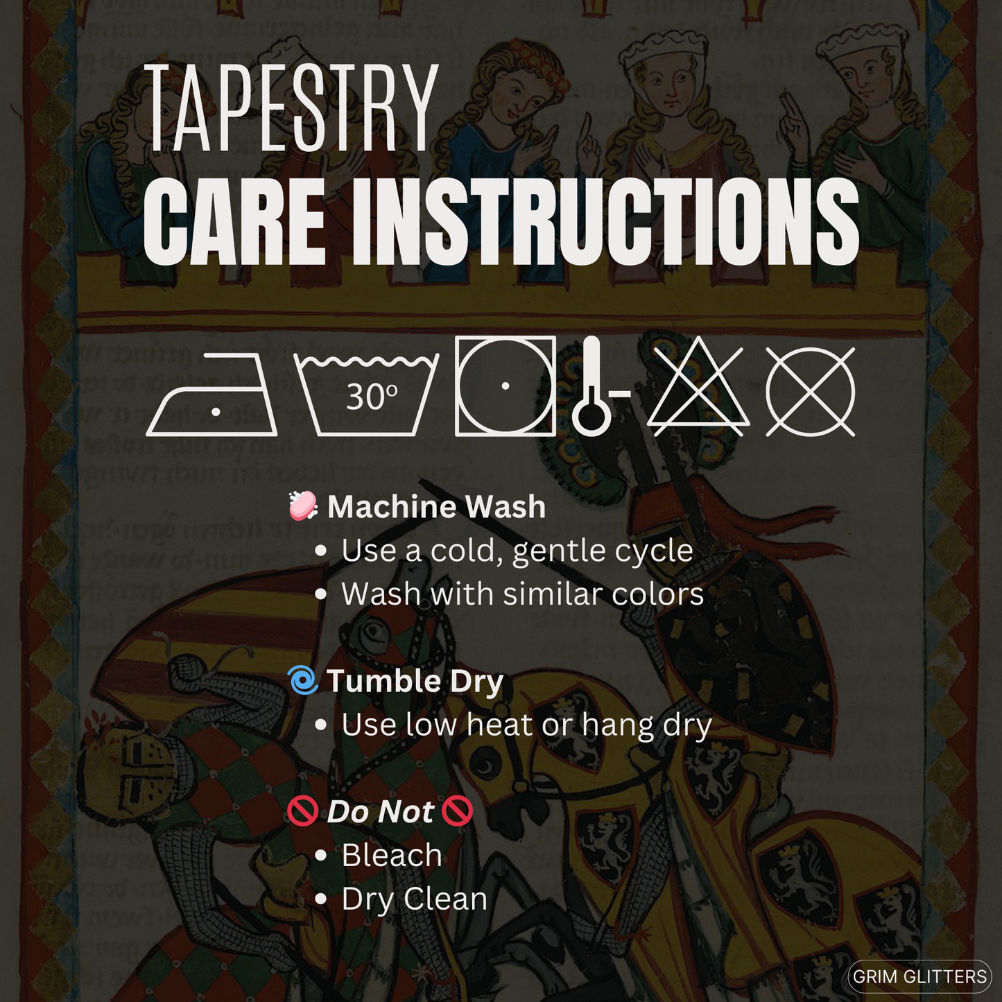 Our tapestry is crafted from high-quality polyester, ensuring both durability and the retention of the rich colors and intricate details characteristic of medieval art. The hemmed edges provide a polished finish, making this tapestry a timeless addition to any room.