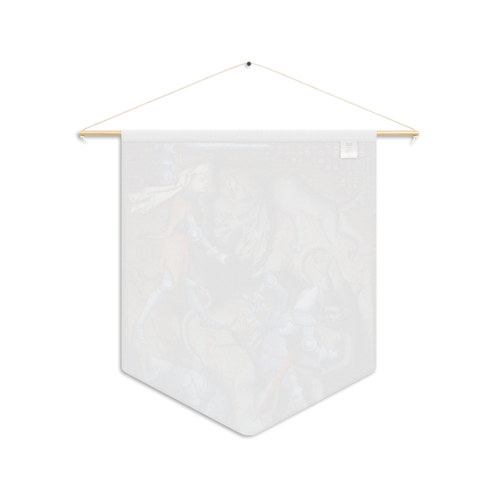 Designed to evoke both the mythological and chivalric spirit of the Middle Ages, this pennant banner serves as a unique statement piece for those fascinated by heroic legends. Its bold imagery and storied themes make it a compelling focal point.